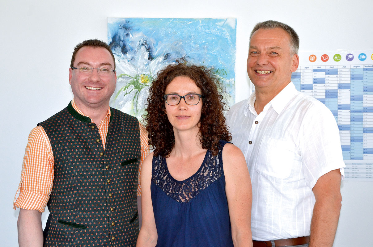 Die neue Leiterin der Musikschule Hallbergmoos-Neufahrn Dr. Cornelia Fischer zusammen mit den beiden Bürgermeistern Harald Reents (links) und Franz Heilmeier