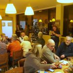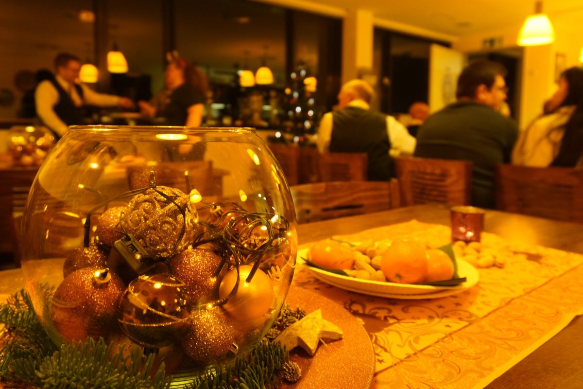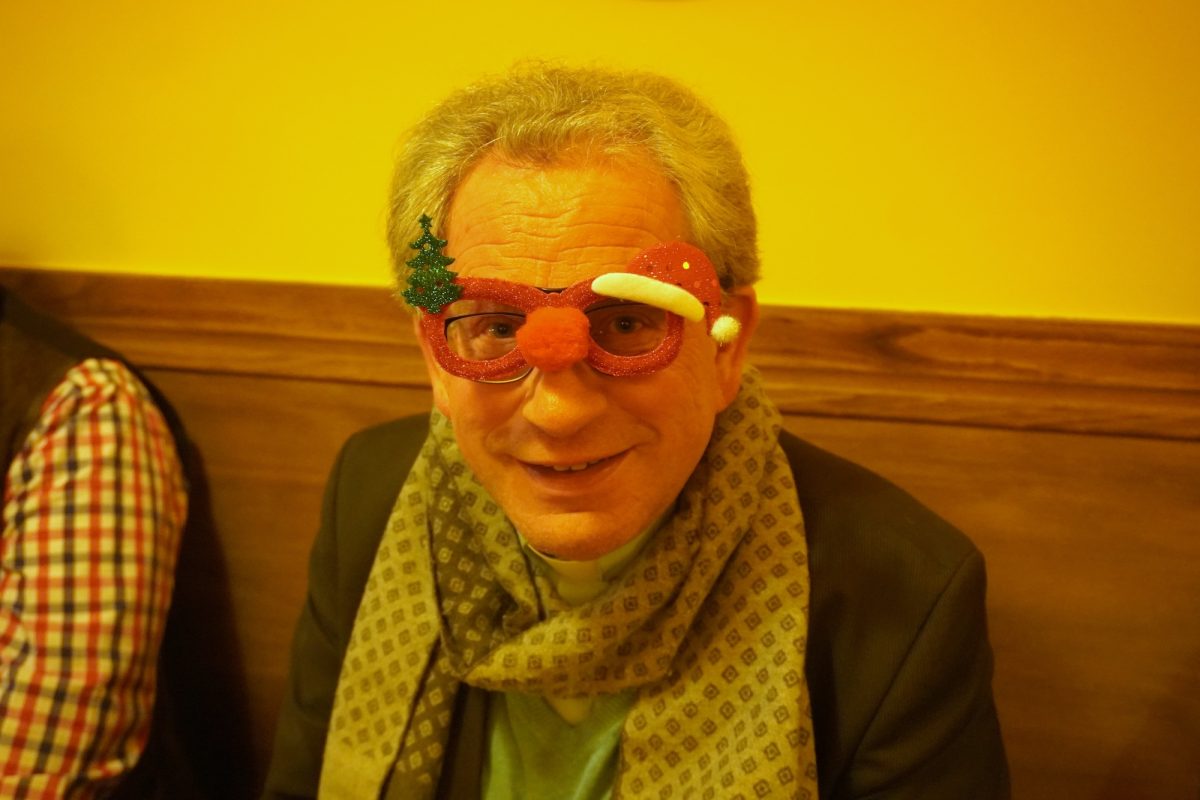 Acht Euro sind geboten, ich höre neun, da kommen zehn“ – Auktionatorin Kirstin Engelhardt ist in Sachen Bieterwettbewerb inzwischen Routinier. Entspannt zeigt sie noch einmal das Objekt der Begierde, eine Wurst, garniert mit einer weihnachtlich dekorierten Sehhilfe, in die Runde. Satt der Staccato-Sprechweise mit bis zu 400 Wörtern pro Minute ihrer amerikanischen Kollegen, reichen bei Engelhardt wenige Sätze, um bei den Bietern im Vereinsheim der SG Edelweiß Interesse hervorzurufen. Schnell schwankt deren Mimik zwischen Kalkül und Interesse. Den Zuschlag bekommt schließlich Pfarrer Thomas Gruber, der mit undurchsichtigem „Pokerface“ das Höchstgebot abgibt. Nachdem das Geld schnell den Besitzer wechselt, setzt Gruber die eben erstandene Brille, Modell „Rudolphs rote Nase“, auf und setzt damit bestens gelaunt „das“ adventliche Fashion-Statement des Abends, bevor er das nächste Angebot verfolgt.