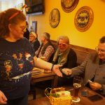 Auktionsassistentin Katja Schmidt wirbelt im Hintergrund und trägt Wein, Wurst, witzige und warme Accessoires wie selbstgestrickte Mützen nach vorne, die dann unter den imaginären Hammer kommen. „Es ist einfach eine schöne Tradition, die wir hier pflegen“, sagt Veranstaltungsleiterin des Vereins, Alexandra Kafka. In diesem Jahr hat die traditionelle Christbaumversteigerung des Schützenvereins, neben vielen kleinen, lustigen, einen sehr feierlichen Moment: „Pfarrer Thomas Gruber hat unsere Fahnenbänder geweiht. Wenn ein Verein 125 Jahre Bestehen feiert, ist das etwas Herausragendes“, erzählt Kafka: „Das hat uns allen eine besondere Freude bereitet und war ein wirkliches Highlight.“ Ein im wahrsten Sinne des Wortes weiteres Glanzlicht setzt die Verssteigerung des Baumes selbst. Allerdings laufe das „etwas anders“ ab, betont Alexandra Kafka. „Als ich das Amt übernahm, fand ich es so schade, dass ein fertig geschmückter Baum kaum und wenn nur für sehr wenig Geld wegging. Daher haben wir einen künstlichen Baum, der nicht versteigert wird, sondern ein Christbaum- Gutschein. So können sich die Leute das selbst einteilen.“ Auch hier zeige sich Thomas Gruber stets als eifriger Bieter, verrät die Organisatorin.