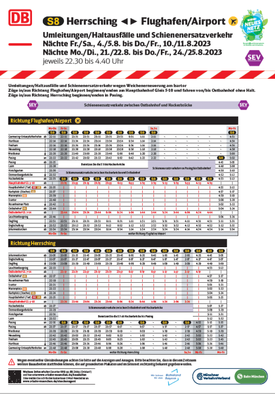 – S 8: Züge in/aus Richtung Herrsching beginnen/enden in Pasing.