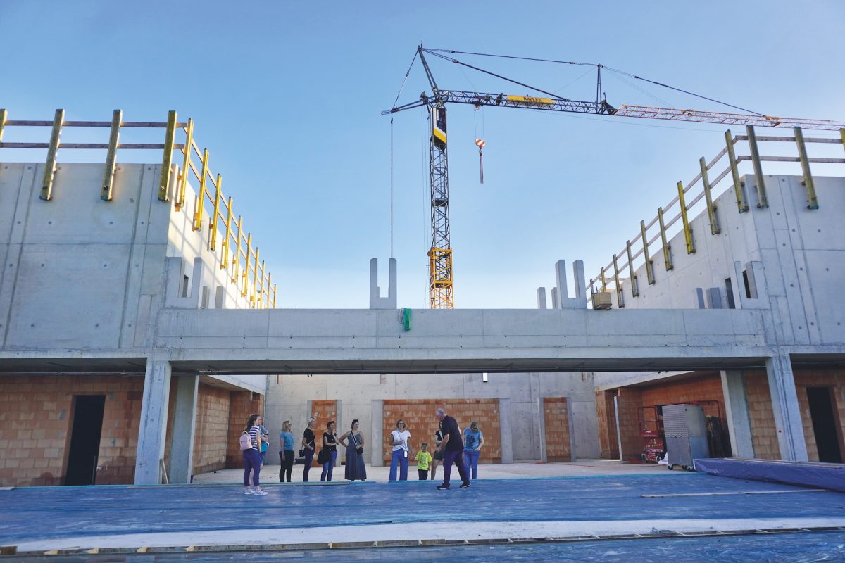 Wenn sich eine 10-köpfige Damenrunde nebst Nachwuchs mit nur einem Mann trifft, kann das nur einen Grund haben: eine Baustellenbesichtigung. Stephan Zobel, erster Kommandant der Freiwilligen Feuerwehr stellt sich den Fragen, die der anwesenden Freundinnen und Frauen aktiver Einsatzkräfte unter den gepflegten Nägeln brennen. „Die jetzige Hausnummer ist eigentlich die „1“ und der neue Standort ist die „01“, so ist die neue Hausnummer entstanden.“ Bis zur Eröffnung des neuen Feuerwehrhauses im Juli oder August 2026 dauert es nicht mehr allzu lange und wer sich im Rohbau umschaut, kann sich nach Zobels Ausführungen ein gutes Bild davon machen, wie es aussehen soll.