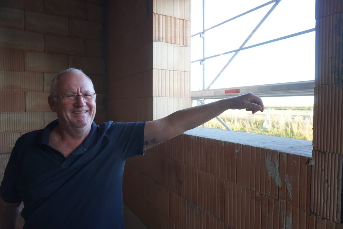 Im Bau sorgen die „42er Ziegel“ ohne Außendämmung für gutes Raumklima. Der an manchen Stellen sichtbar eingesetzte Beton sei aus statischen Gründen notwendig, verweist Zobel. „Und baugleiche Räumlichkeiten machen den Bau insgesamt günstiger, da Neuplanungen überflüssig sind. Außerdem ist er behindertengerecht, also barrierefrei. Wir kommen auch überall mit dem Hubwagen hin.“ Auf dem Dach befinden sich wir zwei Retention Grünflächen (200 und 350 Quadratmeter): „Im Bedarfsfall könnten wir dort jederzeit drei Wohnungen á 80 Quadratmeter errichten.“ Ein Zaun sei für eine Durchgangshöhe von 20 Zentimetern über der Grasnarbe vorgesehen: „Damit die Igel durchpassen. Und wir haben das Haus so weit wie möglich nach rechts geschoben, um keinen Baum fällen zu müssen.“