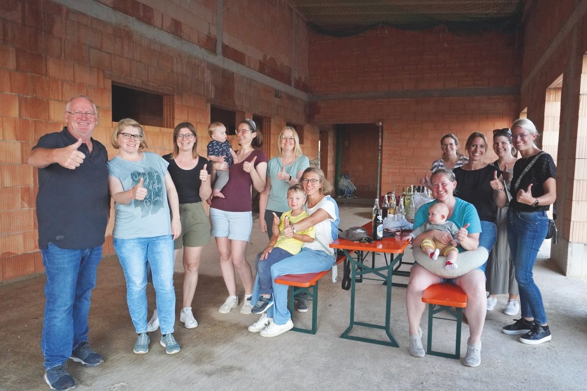 Wenn sich eine 10-köpfige Damenrunde nebst Nachwuchs mit nur einem Mann trifft, kann das nur einen Grund haben: eine Baustellenbesichtigung. Stephan Zobel, erster Kommandant der Freiwilligen Feuerwehr stellt sich den Fragen, die der anwesenden Freundinnen und Frauen aktiver Einsatzkräfte unter den gepflegten Nägeln brennen. „Die jetzige Hausnummer ist eigentlich die „1“ und der neue Standort ist die „01“, so ist die neue Hausnummer entstanden.“ Bis zur Eröffnung des neuen Feuerwehrhauses im Juli oder August 2026 dauert es nicht mehr allzu lange und wer sich im Rohbau umschaut, kann sich nach Zobels Ausführungen ein gutes Bild davon machen, wie es aussehen soll.