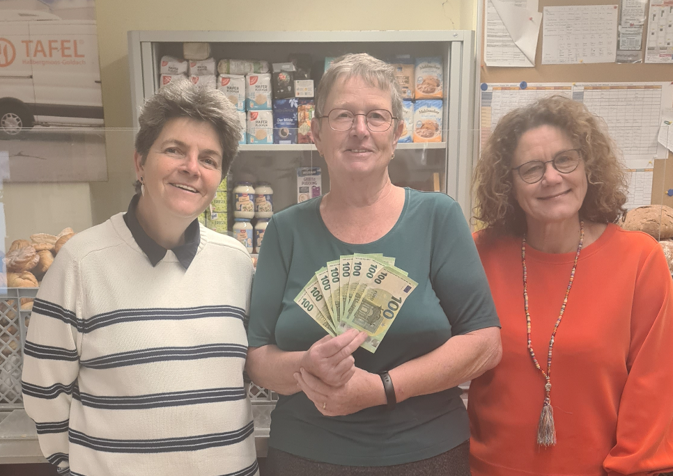 Jutta Hebbeler durfte vor Kurzem ihren 70. Geburtstag feiern. Dazu lud sie ins Pfarrheim in Hallbergmoos ein. Ihre weit verstreute Familie war ebenso in Feierlaune, wie Vertreter der Gemeinde, der Pfarrei und der Nachbarschaftshilfe, des VfB und all den Stellen in denen sich die aktive „Unruheständlerin“ ehrenamtlich engagiert. Die Trägerin der Silbernen Bürgermedaille der Gemeinde Hallbergmoos ließ sich an diesem Tag ausgiebig feiern. Und auch zu diesem Anlass bedachte sie diejenigen, die auf Hilfe und Unterstützung angewiesen sind. Bereits in ihrer Einladung bat sie statt Geschenken um eine Spende für die TAFEL Hallbergmoos. Stolze 700 Euro übergab sie an Martina Wilkowski (NBH) und Tanja Voges (Tafel). Die bedankten sich herzlich und es ist selbstredend, dass diese Spende zweckgebunden für die Tafelkinder (Schulmaterial, Lernhilfen etc.) eingesetzt wird. Als Kassier der NBH hat sie schließlich den Nachweis an erster Stelle. Alle Gratulanten waren sich einig, Jutta ist ein Original und bleibt dem Ort hoffentlich noch lange so aktiv erhalten.
