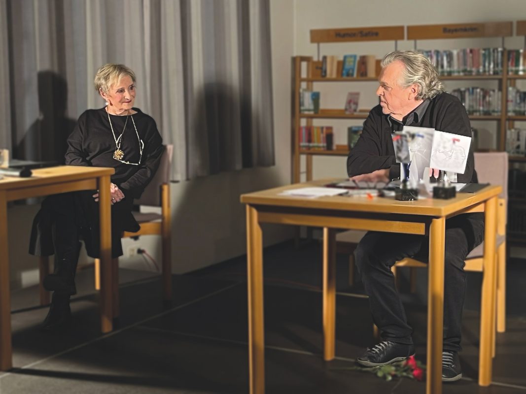 Gedämpftes Licht fällt auf zwei Tische auf der kleinen Bühne der Gemeindebücherei Hallbergmoos. Links steht ein Glas Whiskey, rechts glänzen zwei Pokale. An den Tischen nehmen Irene Trübenbacher-Breibeck und Oskar Weissthanner Platz. Sie lesen die Briefe von Melissa und Andrew – zwei Menschen, deren Leben sich über Jahrzehnte immer wieder berühren, ohne wirklich zusammenzufinden. Allein durch Stimme, Blicke und ausdrucksstarke Gesten zeichnen beide Darsteller eine Beziehung nach, die zwischen Nähe, Distanz, Humor, Wut und leisen Momenten pendelt. Die Veranstaltung fand am 7.November 2025 im Rahmen des 40- jährigen Jubiläumsjahres der Bücherei statt und wurde zu Beginn durch die Büchereileitung Petra Niedermair eröffnet. Rund 20 Besucherinnen und Besucher nahmen an diesem Abend teil. Zu Gast war die Theatergruppe WerkStück der vhs Freising e.V. Unter der Regie von Barbara Berger präsentierte das Ensemble das Stück „Love Letters“ des amerikanischen Autors Albert Ramsdell Gurney (Deutsch von Inge Greiffenhagen und Daniel Karasek). Seine Premiere feierte das Stück im Januar 2025, nachdem die Proben bereits im Frühjahr 2024 begonnen hatten. Für den Auftritt in Hallbergmoos griff das Ensemble auf diese Inszenierung zurück und bereitete sie für den Abend erneut vor.