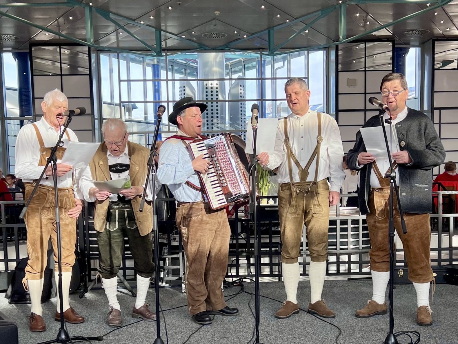 Die liebevolle Geste berührte zahlreiche Gäste und schlug eine schöne Brücke zwischen den Generationen. Bei Kaffee und Kuchen klang der Nachmittag zunächst gemütlich aus, bevor die „Feuerleut“ erneut die Bühne betraten. Gemeinsam mit der Geschichtenerzählerin Bettina Marquart gestalteten sie einen Hoagart voller Musik, Dialekt, Adventsstimmung und vertrauter Melodien. Höhepunkt war – wie es Tradition hat – der Andachtsjodler, den Chor und Gäste gemeinsam anstimmten. Dieser Tag zeigte einmal mehr, wie lebendig und wertvoll die Gemeinschaft in Hallbergmoos ist – und wie kleine Gesten, Musik und Begegnungen gerade in der Weihnachtszeit große Wirkung entfalten können.