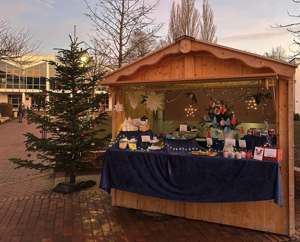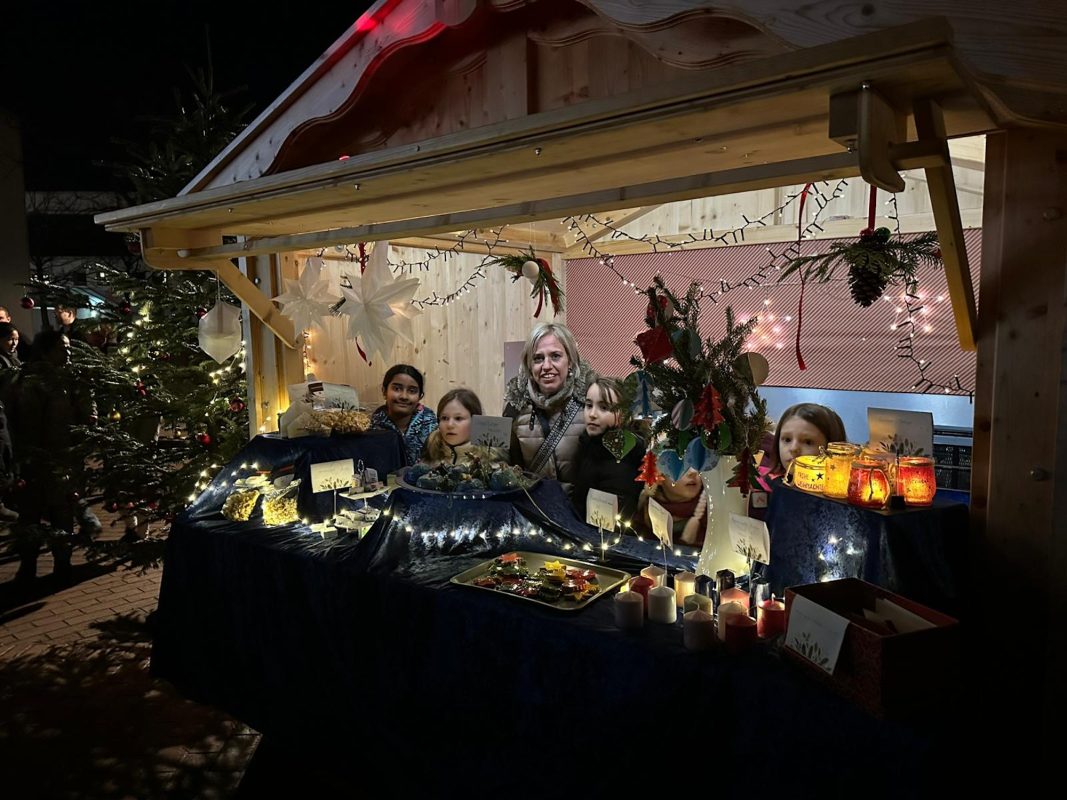 Am 09.12.2025 trafen sich Schüler, Eltern und Lehrer der Grund- und Mittelschule Hallbergmoos auf dem Vorplatz der Grundschule zum gemütlichen Beisammensein und informellen Austausch im Rahmen eines „Adventstreffs“. Die Elternbeiräte sorgen für stimmungsvolles Ambietente und das leibliche Wohl. Die Werkgruppen der Schule boten selbst Gebasteltes zum Verkauf an. Das Wetter passte super und viele Kinder und deren Eltern oder Verwandte sowie Lehrkräfte kamen zum Adventstreff. Zum Einstimmen gab der Schülerchor der Grundschule unter der Leitung von Frau Schlüter zwei nette Weihnachtslieder zum Besten.