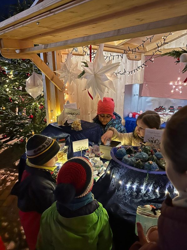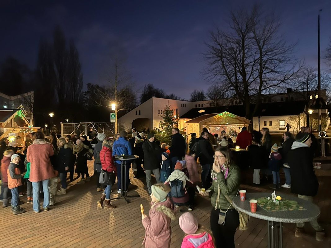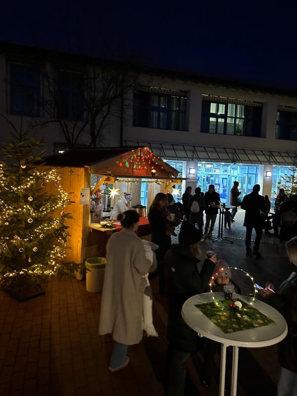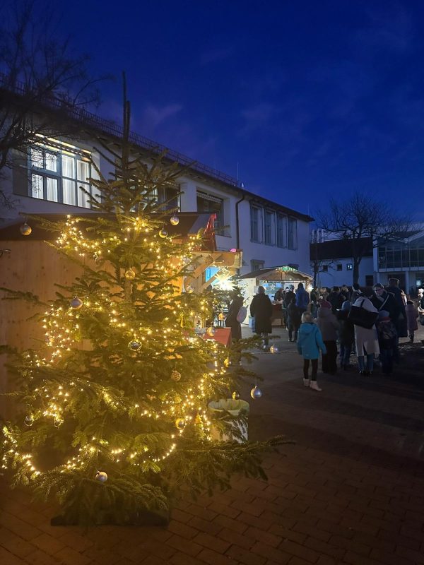 Am 09.12.2025 trafen sich Schüler, Eltern und Lehrer der Grund- und Mittelschule Hallbergmoos auf dem Vorplatz der Grundschule zum gemütlichen Beisammensein und informellen Austausch im Rahmen eines „Adventstreffs“. Die Elternbeiräte sorgen für stimmungsvolles Ambietente und das leibliche Wohl. Die Werkgruppen der Schule boten selbst Gebasteltes zum Verkauf an. Das Wetter passte super und viele Kinder und deren Eltern oder Verwandte sowie Lehrkräfte kamen zum Adventstreff. Zum Einstimmen gab der Schülerchor der Grundschule unter der Leitung von Frau Schlüter zwei nette Weihnachtslieder zum Besten.