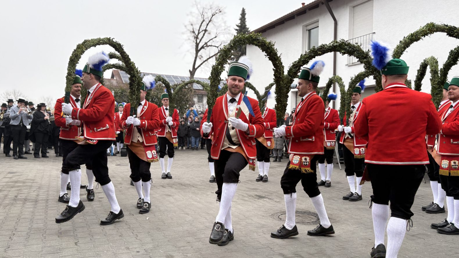 Am Samstag, den 24.01.2026, traten die Schäffler aus Ismaning im Hof des Getränkehandels K&F auf. Viele Kunden und Bescuher nutzten die Gelegenheit, den traditionellen Schäfflertanz aus nächster Nähe mitzuerleben.